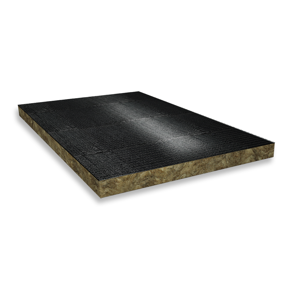 Mineralwolle-Brandschutzplatte, einseitig kaschiert mit schwarzen glasfaserverstärkter Alufolie.Steinwollplatte 100 mm, Format 1000 x 600 mm